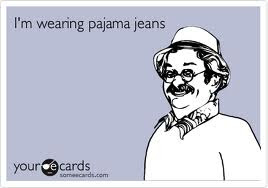 In the meantime, move aside mom-friendly stretchy black pants, this Mom of the Year is now rocking out her PAJAMA JEANS. These manage to skillfully breach the gap between “daywear” and “Otherwise”. One day last week I had to Go Out At Night. Sweatpants would have been inappropriate for this particular occasion and my pajama jeans had yet to arrive in the mail, so the only choice I had was to go formal–bring on the sweet black dress I wore at my mother’s funeral (whatever all you haters–it’s the last new outfit I’ve bought in a long time and I love it, so yes, will continue to re-wear). In any case, naptime was the only chance I had to “get ready” for my night out, so there I am at 3pm, rocking out my formal wear, praying that none of my neighbors would stop by and think me crazy. So, this is where we praise God that I now have another option–now able to happily cross the bridge between bummy and dressy. Dang if I don’t look hot in these modern Mom Jeans. Screw all of you who dare to point out the elasticity of these jeans.