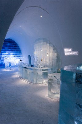 What is wrong with me?! I have always wanted to go to The Ice Hotel. This makes no sense, as I hate being cold and I especially hate being wet. But I am just fascinated. The diligence of this abode’s creators wows me–I become grouchy enough just trying to create a livable space in non-icy/potential-to-melt conditions. I can’t imagine the obstacles these hoteliers must encounter in interior decorating. So I tip my hat, I bow, go you, you Ice Hotel envisionaries. In another life, I will escape on a fantasy-like getaway to these gorgeous sub-zero accomodations. In the meantime, I will just snuggle up with my heated mattress pad, despite the warming spring-like climate and rejoice that there is absolutely ZERO CHANCE THAT MY BED COULD EVER MELT.
