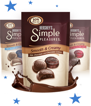Simple Pleasures are the newest creation from Hershey. But these are not just your average chocolates: Hershey’s Simple Pleasures chocolates have 30 percent less fat than the average leading milk chocolates. While all the rest of you amazing postpartum moms seem to have the whole weight issue under control, this Mom of the Year is definitely struggling. So these lighter chocolates are a good thing. I can indulge in something sweet with a little less guilt? Sounds good to me! Think about how you would feel being able to eat chocolate (or any favorite food) and feel okay about it?? Pretty awesome stuff, huh?