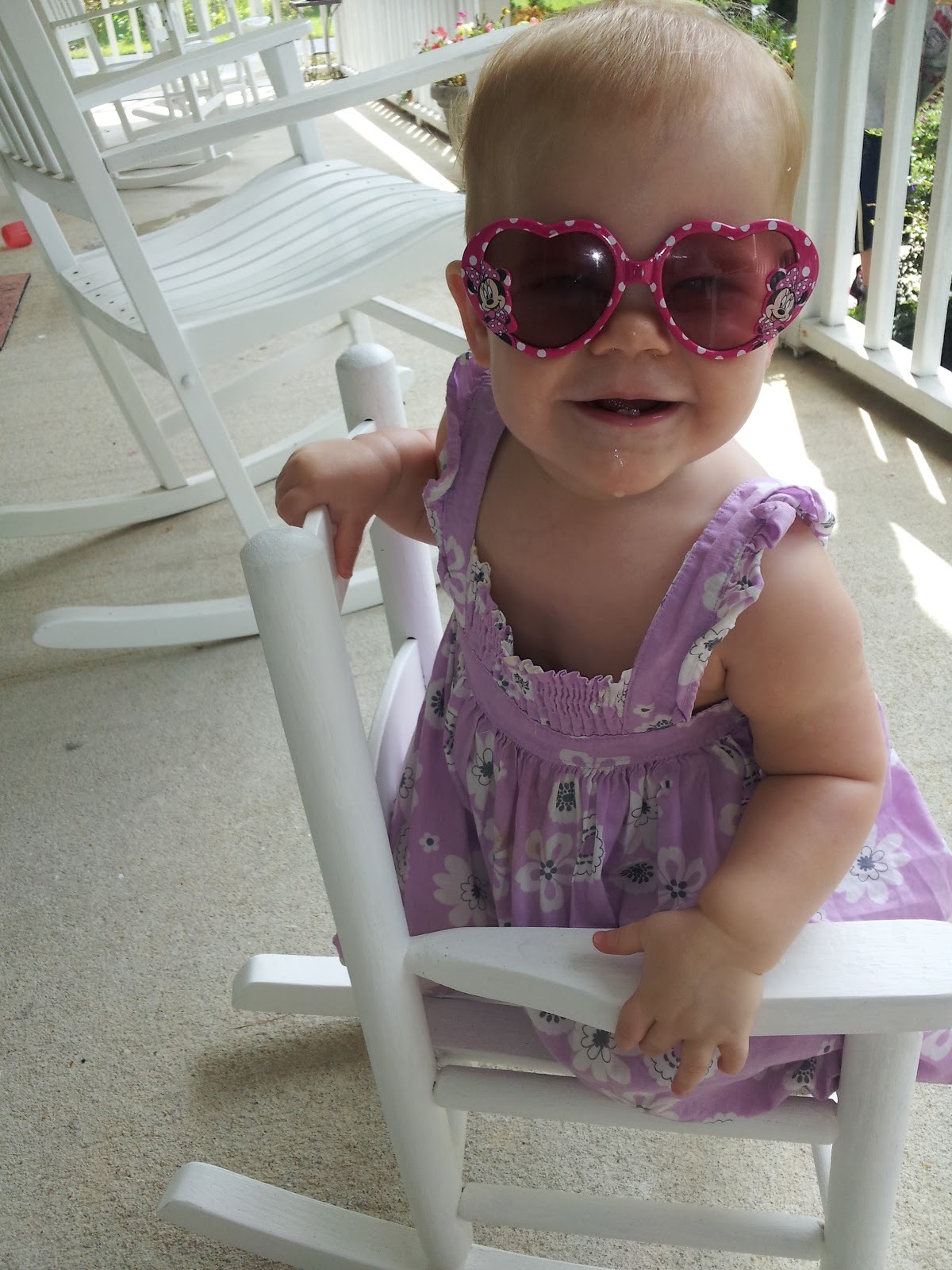 What is even on the front porch? Nothing, or so I thought…As it turns out, the kid-sized rocking chairs were endless amusement for my daughter who just the week before started walking. She toddled back and forth between the chairs, crawled on them, spun around, rocked for a nanosecond and then repeated. She LOVED it. And oh, did I mention she was rocking some pretty crazy cool sunglasses to boot? Turns out sporting a diva look and exploring our porch furniture was going to be enough to keep her happy.