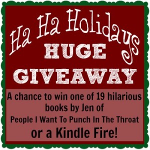 Since I don’t have a super-cool holiday tale of my own to share, I turn to awesome people like Jen of People I Want to Punch in the Throat for belly-rolling laughs. I’m thrilled to spread some holiday cheer and join some amazing bloggers to share her fantastic new book today, which you’ll read all about below. Did I mention a bunch of copies of the book are being given away and a Kindle Fire?! And if you aren’t one of the lucky winners, grab your own copy here.